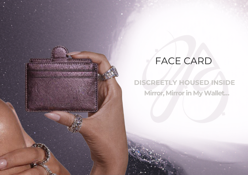 Meet FaceCard, a refined essential designed. features a detachable mirror discreetly housed inside.